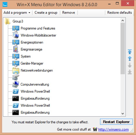 Denn um ein Programm etc. in dieses Win + X Menü hinzuzufügen, benötigt man den Win + X Menu Editor, der auch unter Windows 8.1 sehr gut arbeitet.