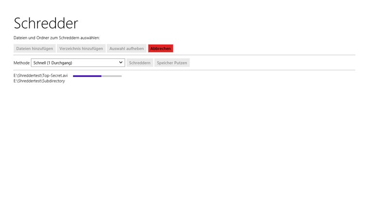 - Beliebig viele Dateien und Verzeichnisse können zum Schreddern ausgewählt werden