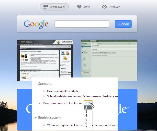 Ach doch . Nun kann man unter Einstellungen/ Browser die maximale Anzahl an Spalten in der Schnellwahl einstellen. Möglich ist die Anzahl zwischen 2 und 7.