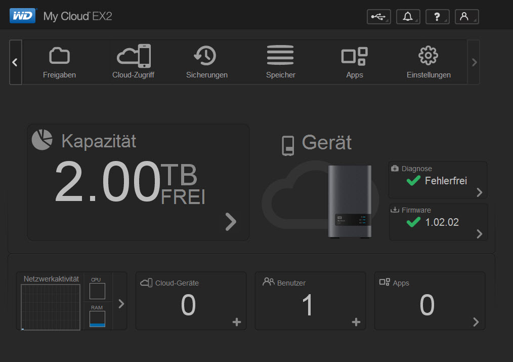 Im Weiteren gehe ich nun von meiner vorkonfigurierten My Cloud EX2 mit 4 TB aus.