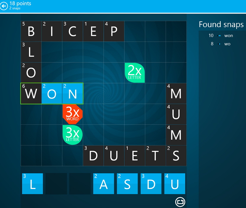 Im Spiel selber hat man die Möglichkeit alles an bisherigen Wörtern zurückzusetzen, oder per Doppelklick auf einen Buchstaben, diesen wieder zurückzuziehen.