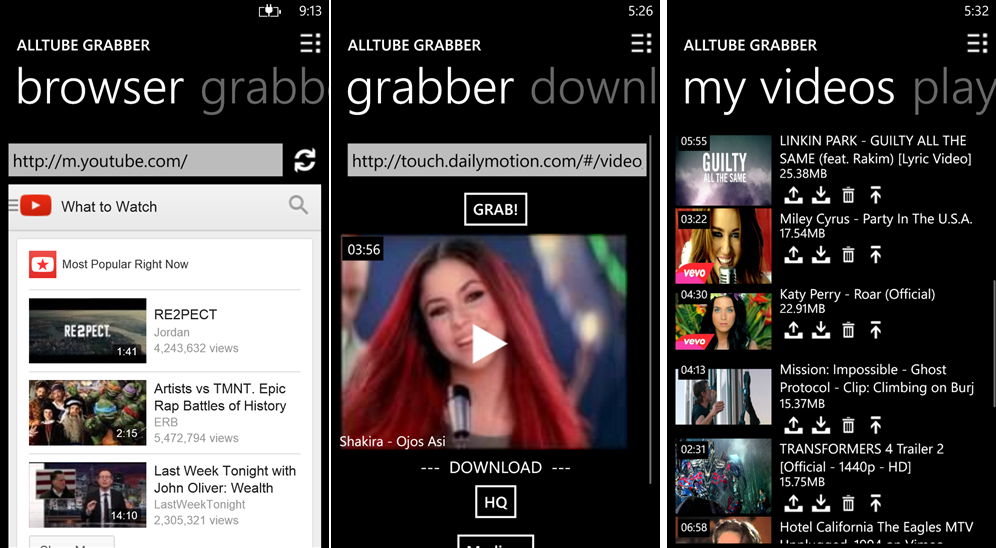 Heute zwei Apps die es im Windows Phone Store kostenlos zum Herunterladen gibt. Einmal der AllTube Grabber, der wie immer bis 24.00 Uhr heruntergeladen werden kann. Er kann, wie der Name schon sagt, Videos nicht nur von YouTube, sondern von vier Video Seiten herunterladen und auch auf OneDrive speichern. Der AllTube Grabber erstellt auch Wiedergabelisten und kann auch die Reihenfolge der abzuspielenden Videos so setzen, wie ihr es gerne haben möchtet.