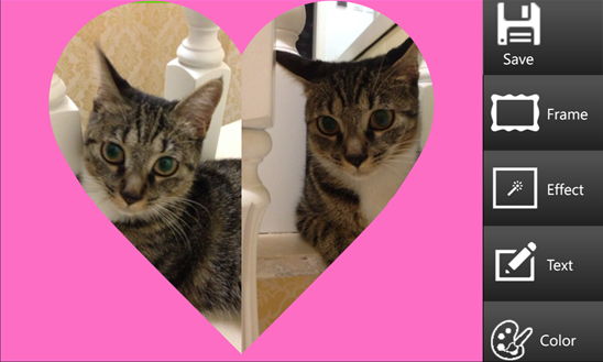 Man kann eine Collage auswählen, Bilder hinzufügen drehen, anpassen, Text hinzufügen usw. Danach kann man die erstellten Collagen auf Facebook etc. teilen.