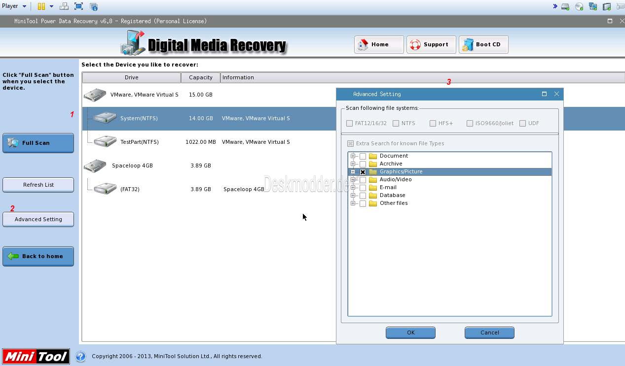 Recover der gelöschten Bilder mit „ Digital Media Recover Funktion „