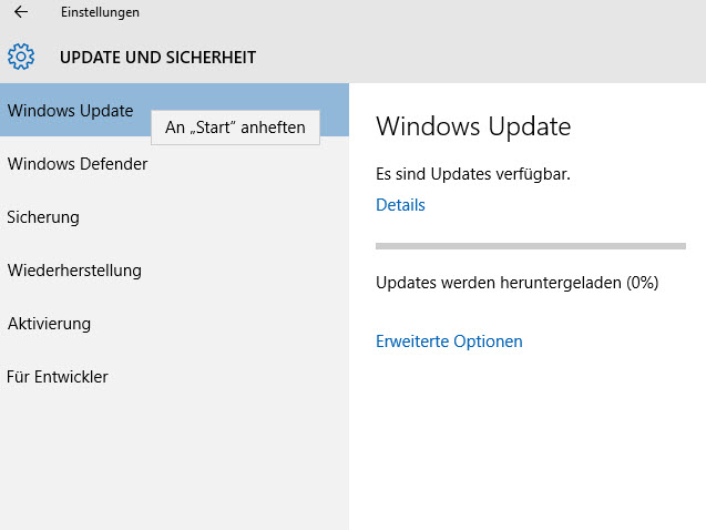 Kurz notiert für die Tester der inoffiziellen Windows 10 Build 10147. Bisher war es bereits möglich einzelne Bereiche aus dem Einstellungs-App an das Startmenü zu pinnen. Hierfür hatte man im oberen Bereich eine Stecknadel bereitgestellt. Auch das Lösen vom Startmenü wurde hiermit durchgeführt.