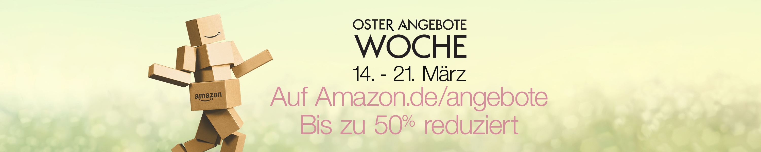 "In der Oster-Angebote-Woche bei Amazon.de vom 14. bis zum 21. März können sich Kunden auf mehr als 6.000 Angebote mit bis zu 50 Prozent Rabatt freuen. Frühaufsteher können sich bereits ab 7.00 Uhr die ersten Deals sichern, danach starten neue Blitzangebote bis 19.45 Uhr im 15-Minuten-Takt. Diese sind nur in begrenzter Anzahl und maximal für vier Stunden verfügbar und können blitzschnell ausverkauft sein. In den ersten 30 Minuten sind Blitzangebote jeweils exklusiv für Prime-Mitglieder verfügbar. Zusätzlich gibt es täglich mehr als zehn Angebote des Tages, welche jeweils ab Mitternacht für maximal 24 Stunden erhältlich sind. Für alle, die schon früher mit dem Oster-Einkauf starten möchten, gibt es ausgewählte Angebote des Tages bereits täglich im Countdown zur Oster-Angebote-Woche vom 11. bis 13. März.