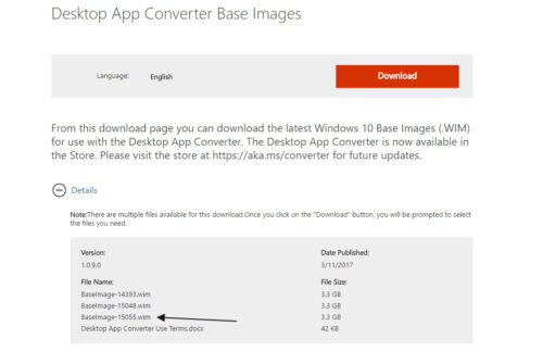 Desktop App Converter Base Images 15055.wim steht zum Download bereit