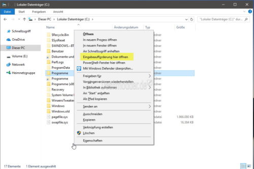 Das war es auch hier. Nun kann man jeweils die Eingabeaufforderung sofort dort öffnen wo man sie braucht, ohne sich erst „durchhangeln“ zu müssen.