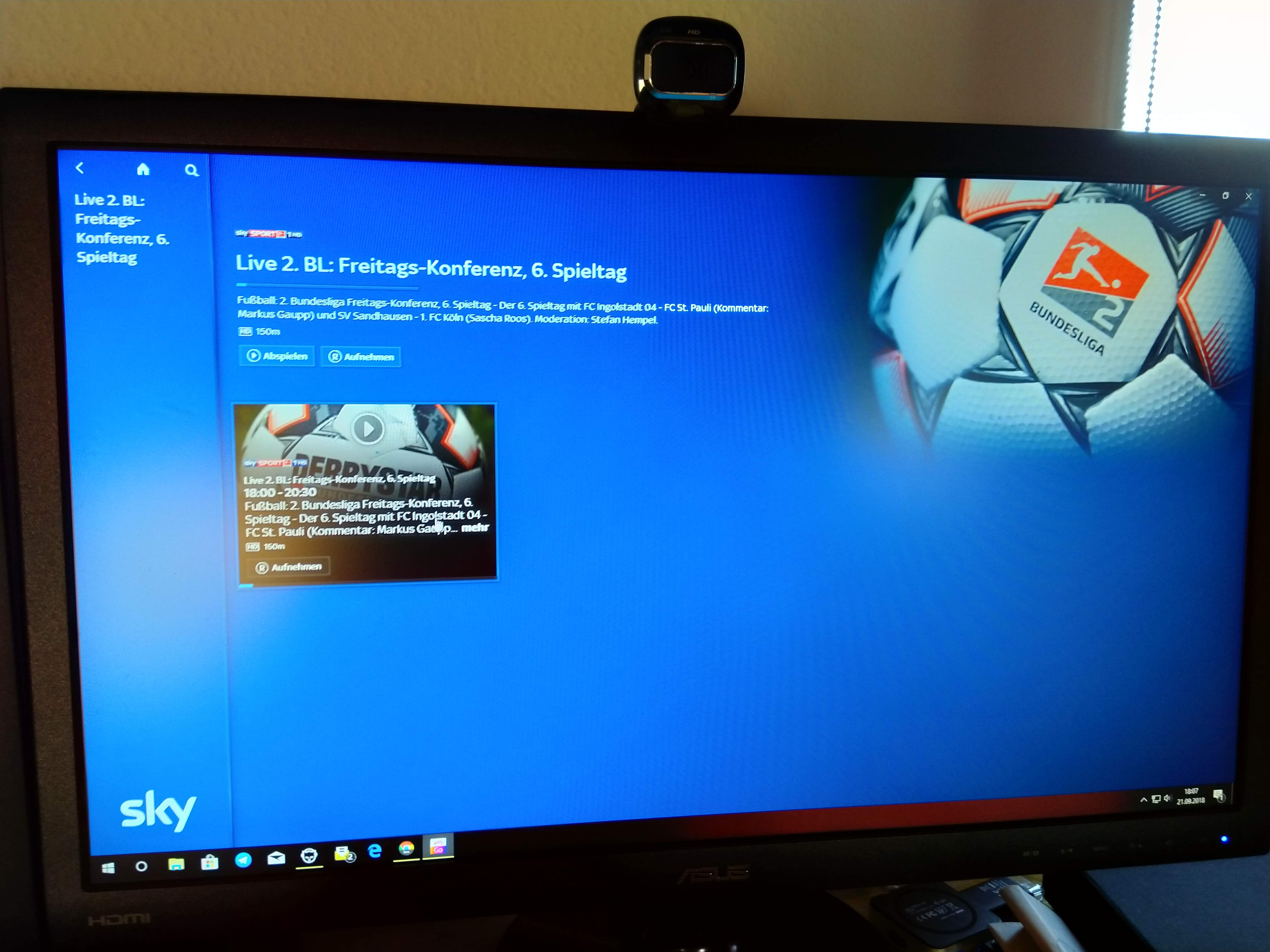 Hier findet ihr ein paar aufgenommene Bilder von mir, da das Programm keine Screenshots erlaubt, weder mit Snipping Tool noch Klassisch. Und auf die schnelle hatte ich keine Lösung parat. Obwohl es eine erste Version scheint und man von Sky etwas anderes gewohnt ist, läuft die „Desktop App“ erstaunlicher Weise sehr gut. Der Download kann über die Webseite von Sky Go ausgeführt werden. [Update] Im November gab es Probleme, die wir hier einmal beschrieben haben, inkl. Lösungsvorschlag von Sky