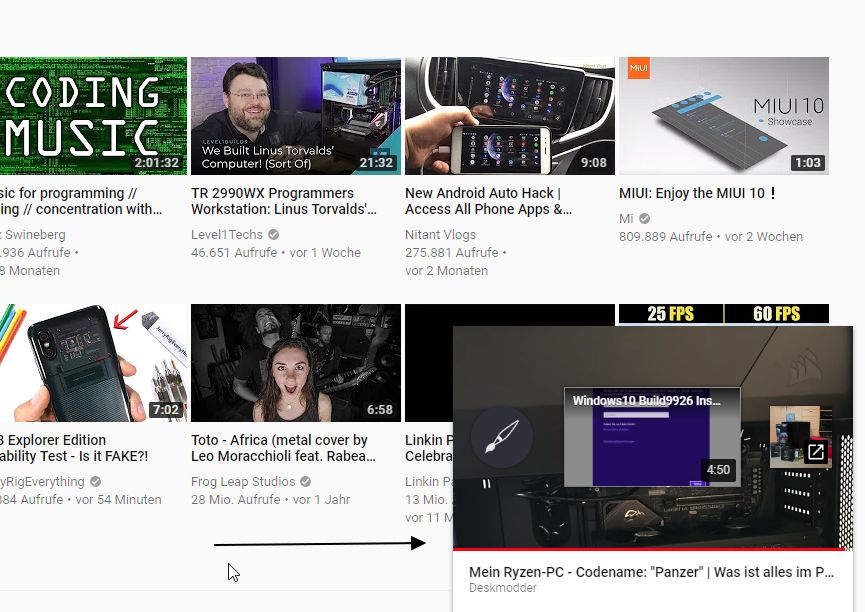 Bisher war es nur ein Test, der nun aber für alle freigegeben wurde. YouTube hat den Videos nun einen Miniplayer spendiert, den man über das kleine Menü rechts unten aktivieren kann. Das kleine Fenster kann man derzeit nicht in der Größe verändern. Klickt man in das kleine Video dann geht wieder das normale auf.