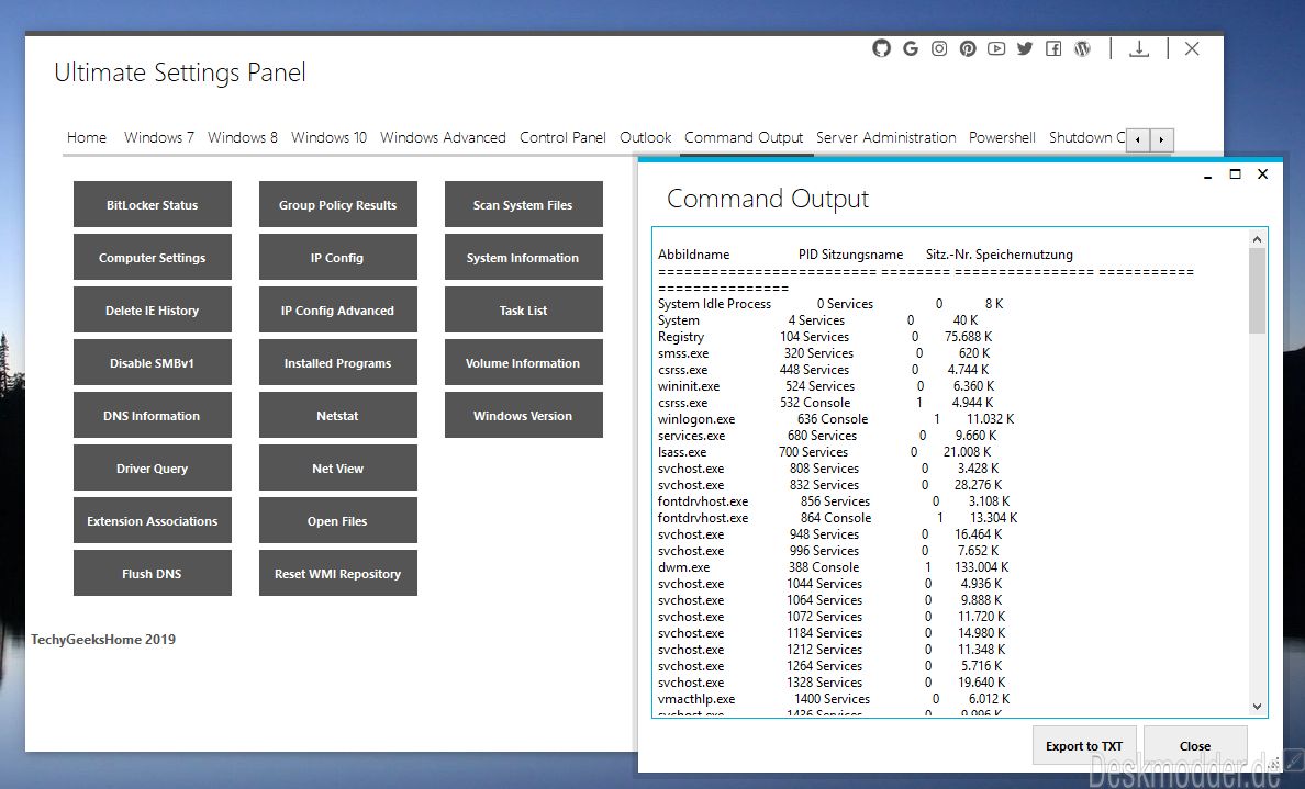 Interessant sind die Command Outputs. Diese liefern die aktuellen Einstellungen, Treiber, aktuellen Prozesse, Aktivierungs-Infos, die man dann ganz bequem als Textdatei abspeichern kann. Wer neugierig ist, kann sich das Ultimate Settings Panel ja selbst einmal anschauen.