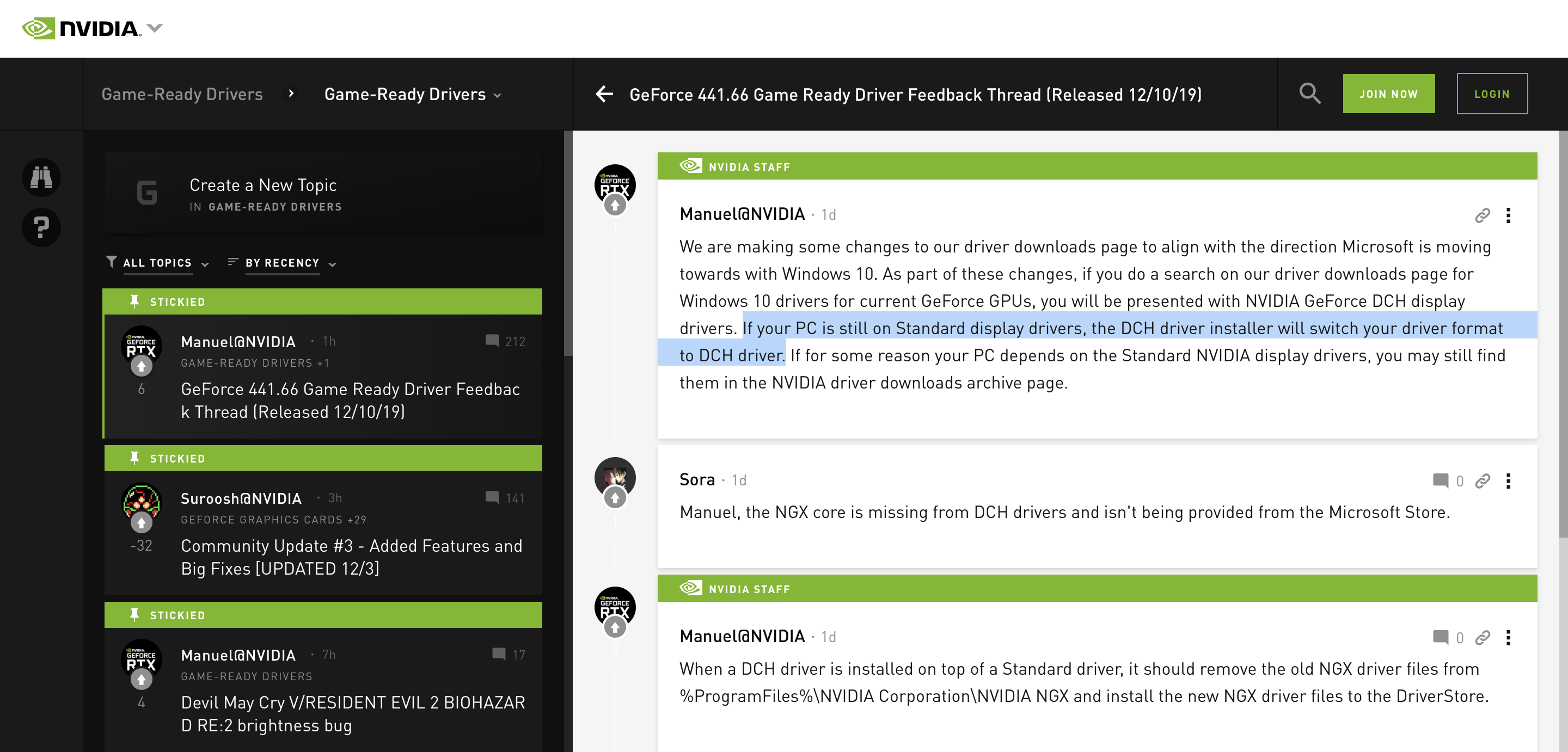 der 441.66 Treiber lässt sich jetzt in beide Richtungen ohne Fehlermeldung installieren, sowohl DCH über Standard als auch Standard über DCH funktionieren jetzt ohne das eine Fehlermeldung beim Setup erscheint.