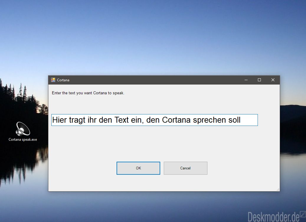Ein kleines „Gimmik“ von Patrick Gruenauer. Er hat eine *.ps1 erstellt, wenn man sie startet einen Text eingeben kann und der wird dann mit der Stimme von Cortana vorgelesen. Kleiner Bastelspaß zum Wochenende eben. Nimmt man dieses Skript und wandelt dies in eine *.exe um, dann wird auch nur das Fenster ohne PowerShell gestartet.