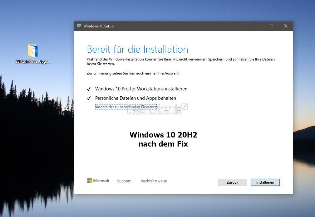 Das hatte ich ja schon weiter oben geschrieben, dass die Änderung alles etwas durcheinander bringt und man daher den Fix nur anwendeten sollte, wenn man ein Inplace Upgrade von 20H2 auf 20H2 durchführen will. Permanent wären die Änderungen so oder so nicht. Daher lohnt es sich nicht, den Fix einfach so auszuführen oder die Änderungen in der ISO zu übernehmen.