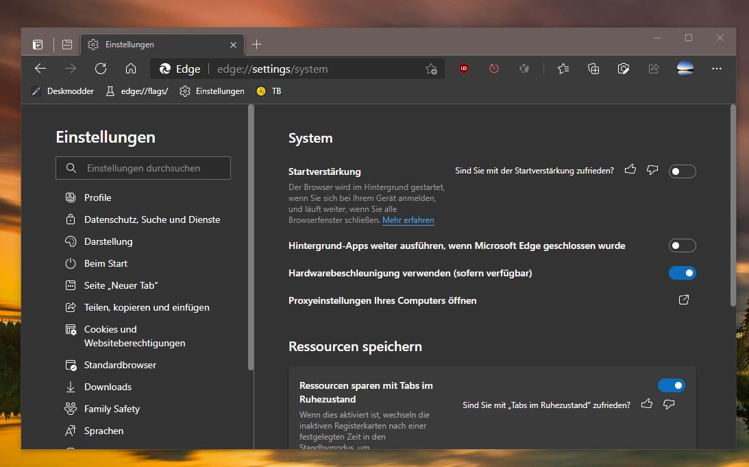 Im Oktober 2020 hatte das Edge-Team dem Browser unter Einstellungen -> System die Startverstärkung spendiert. Dadurch wird der Microsoft Edge automatisch mit Windows mit gestartet und öffnet dann schneller.