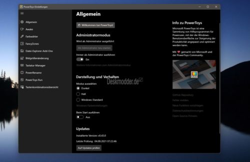 PowerToys 0.43 war eigentlich für den Juli geplant, aber nun gut. Ist ja erst Anfang August und lieber ein paar Tage später, als mit Fehlern. Die neue Version 0.43 ist ein Wartungsupdate und korrigiert einige Fehler.