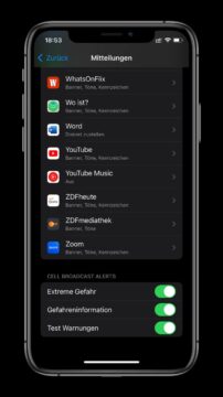 (De-)Aktiviert werden kann die neue Warn-Methode unter Einstellungen – Mitteilungen. Wer dort bis zum Ende der Liste scrollt, findet die Option Cell Broadcast Alerts. Dort lassen sich je nach persönlicher Präferenz extreme Gefahren, Gefahreninformationen sowie Test-Warnungen (de-)abonnieren.