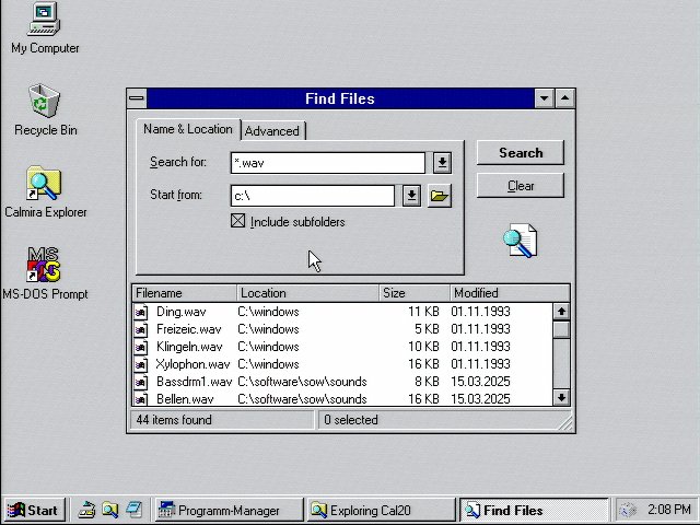 In Calmira ist eine praktische und erstaunlich flott funktionierende Suche enthalten, die optisch der Dateisuche aus Windows 95 entspricht. Zwar müssen die vorher erledigten Suchen gelöscht werden, um keine veralteten Einträge in den Ergebnissen zu haben, aber sie erfüllt ihren Zweck.