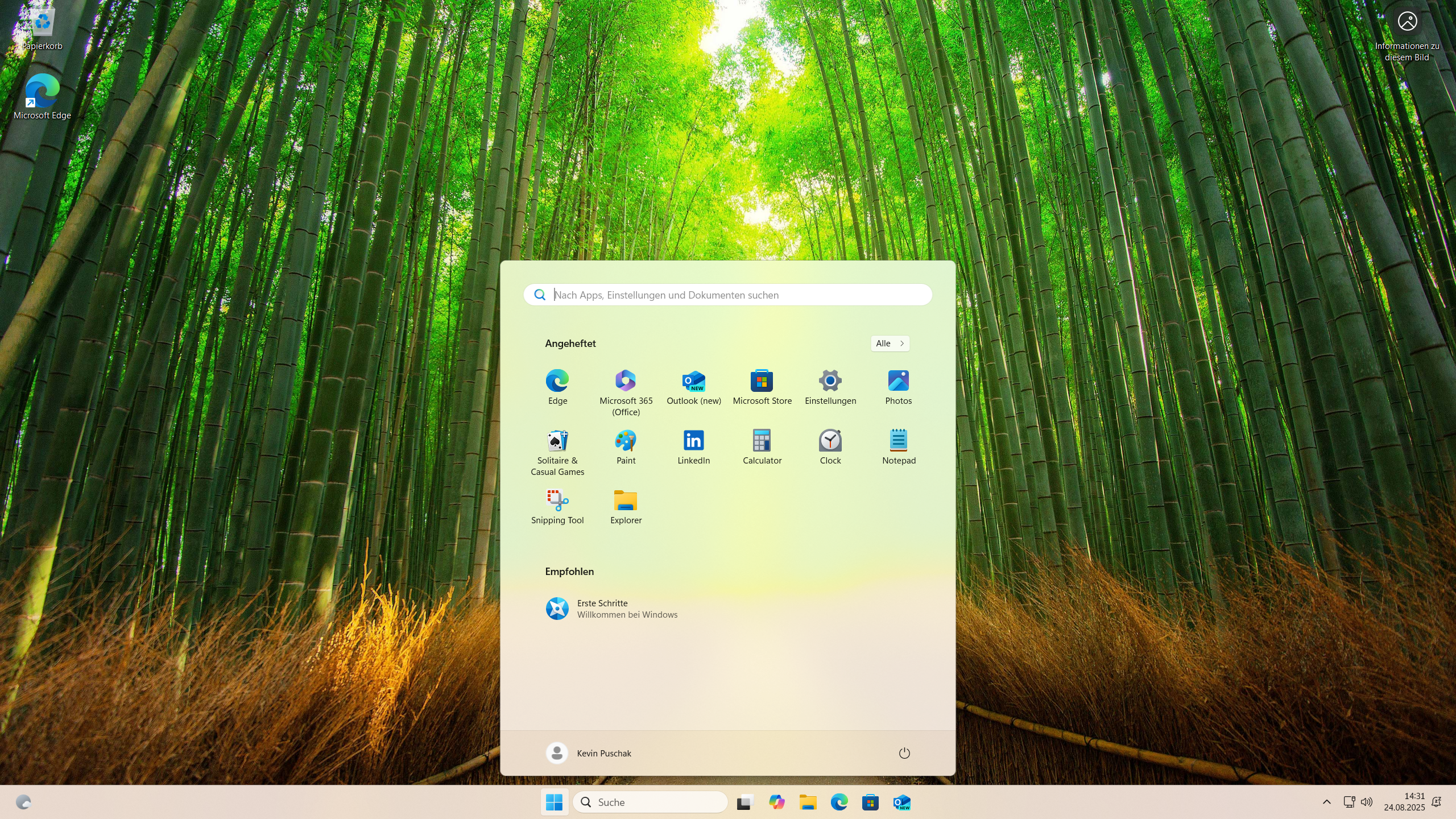 Bis auf wenige Abweichungen entspricht die Einrichtung des auf der SSD installierten Windows 11 Pro 24H2 dem eines frisch von Microsoft heruntergeladenen Images. Zwar wird auf Datenschutzoptionen verzichtet, dennoch wird auch hier der Nutzer zur Einrichtung eines Microsoft-Kontos gebeten. Da sind wir von vorigen NiPoGi-Modellen anderes gewohnt. Die Installation wäre womöglich anders verlaufen, hätten wir uns an die Instruktion am Ethernet-Sticker gehalten, diese vorerst ohne Internetverbindung ablaufen zu lassen. Zu Beginn sind trotz Systemsprache auf Deutsch einige Anwendungen auf Englisch, nach den Updates sind diese allerdings auch des Deutschen mächtig.