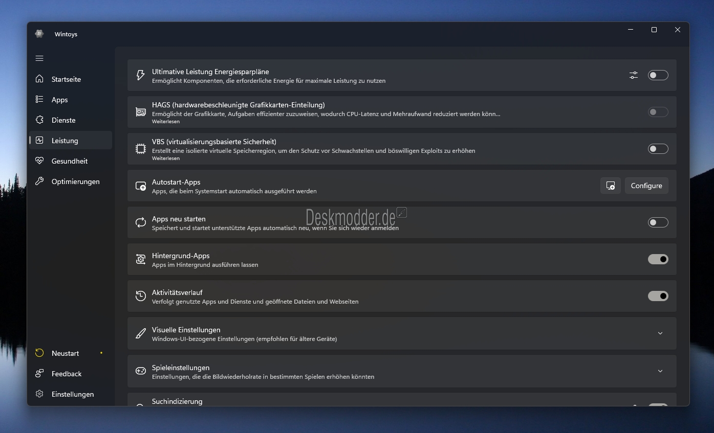 - Option „Num Lock standardmäßig aktiviert“ unter „Optimierungen/System“ hinzugefügt