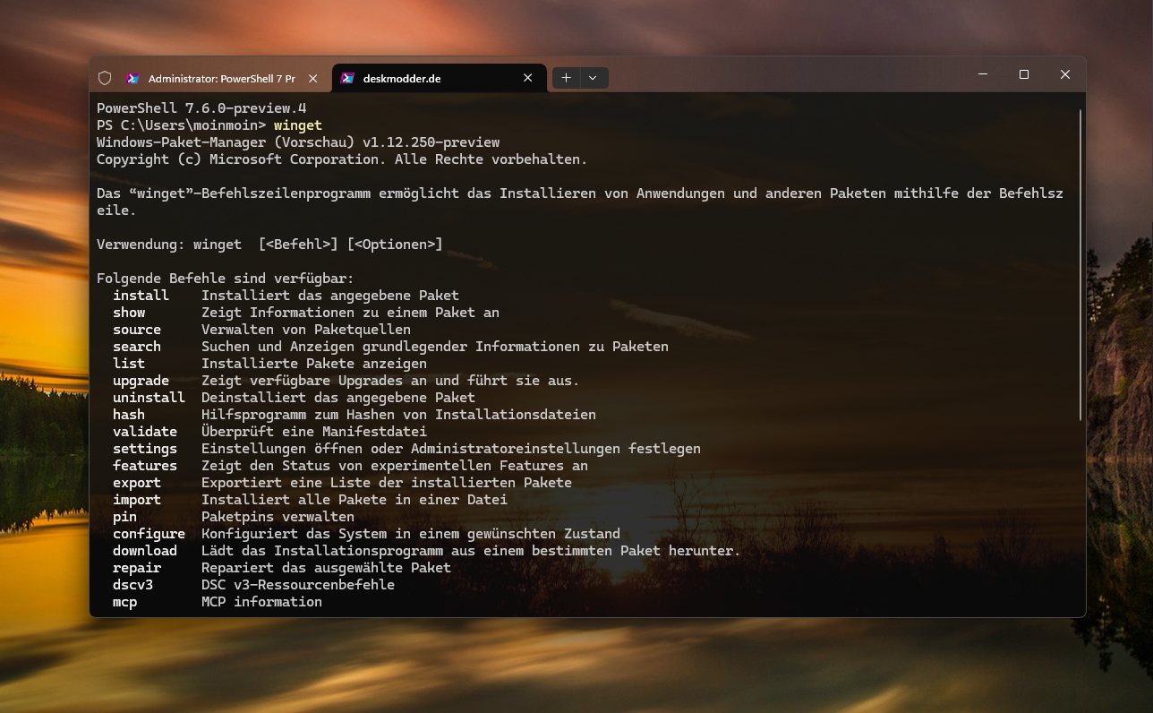 WinGet (Windows Package Manager) 1.12.250 als weitere Preview
