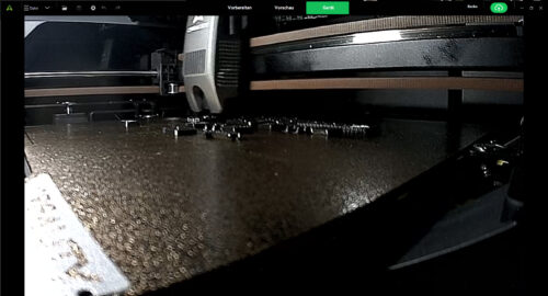 Für zusätzliche Sicherheit sorgen zwei AI-Kameras, die während des Druckvorgangs aktiv mitarbeiten. Die Kammerkamera überwacht die Bauplattform, erkennt typische Fehler wie das gefürchtete „Spaghetti-Printing“ und kann gleichzeitig Zeitrafferaufnahmen erstellen. Die Toolhead-Kamera wiederum passt die Materialextrusion automatisch an, optimiert den Fluss und überprüft auch den Purge Chute, sodass Abfallreste keine Probleme verursachen. Zusammengenommen ergibt sich ein System, das für deutlich weniger Fehldrucke sorgt und die Zuverlässigkeit im Alltag erhöht.