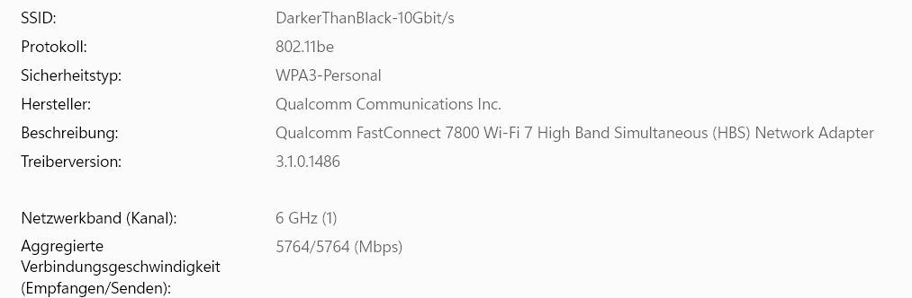 Meine Workstation hat den Qualcom FastConnect 7800 WiFi7 Chipset und der ist richtig Edel.