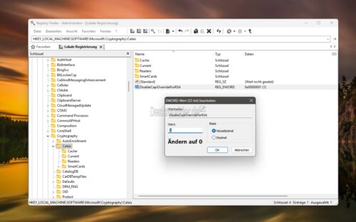 mit einer 0 stehen, falls nicht, dann kann er auf 0 geändert werden, damit das Problem korrigiert wird. Wichtig Diese Änderung sollte man nur dann durchführen, da es sich hier um eine Änderung / Korrektur zur CVE-2024-30098 handelt. - Jetzt einmal neu starten