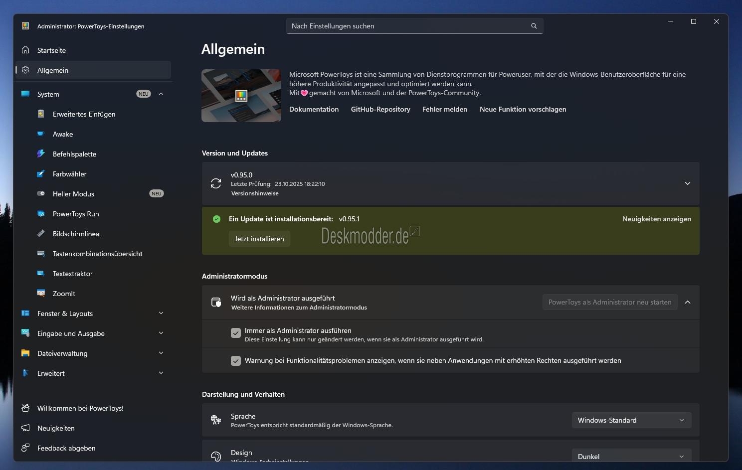 Letzte Woche hatte das Team rund um PowerToys die Version 0.95 bereitgestellt. Dort auch mit der neuen Funktion „Heller Modus“. Jetzt hat man ein Hotfix hinterhergeschickt, der mehrere wichtige Stabilitätsprobleme anhand eingegangener Meldungen korrigiert.