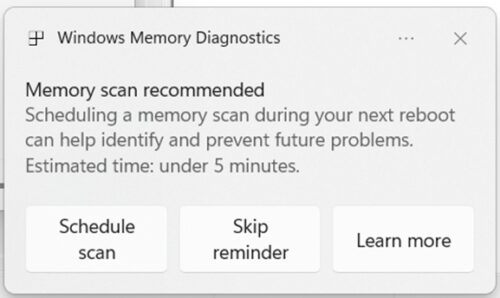 Ein neuer Speicherscan wurde integriert. „Wir führen eine neue Funktion ein, die zur Verbesserung der Systemzuverlässigkeit beiträgt. Wenn auf Ihrem PC ein Bugcheck (unerwarteter Neustart) auftritt, wird Ihnen möglicherweise bei der Anmeldung eine Benachrichtigung angezeigt, in der Ihnen ein schneller Speicherscan vorgeschlagen wird. Wenn Sie sich dafür entscheiden, plant das System einen Windows-Speicherdiagnosescan, der beim nächsten Neustart ausgeführt wird (dauert durchschnittlich maximal 5 Minuten), und fährt dann mit Windows fort. Wenn ein Speicherproblem gefunden und behoben wurde, wird nach dem Neustart eine Benachrichtigung angezeigt.“ Es ist eine frühe Version und noch nicht auf ARM verfügbar.