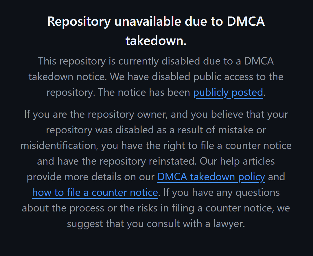 Der Entwickler erklärt, er habe den Code selbst mithilfe von Browser-Entwicklertools aus öffentlich zugänglichen Quellen extrahiert. In der Beschreibung des Projekts schreibt er, dass das Repository „nur zu Bildungs- und Forschungszwecken“ veröffentlicht wurde. Inzwischen zeigt der Projektlink jedoch einen DMCA-Hinweis, der das Repository vollständig offline genommen hat.