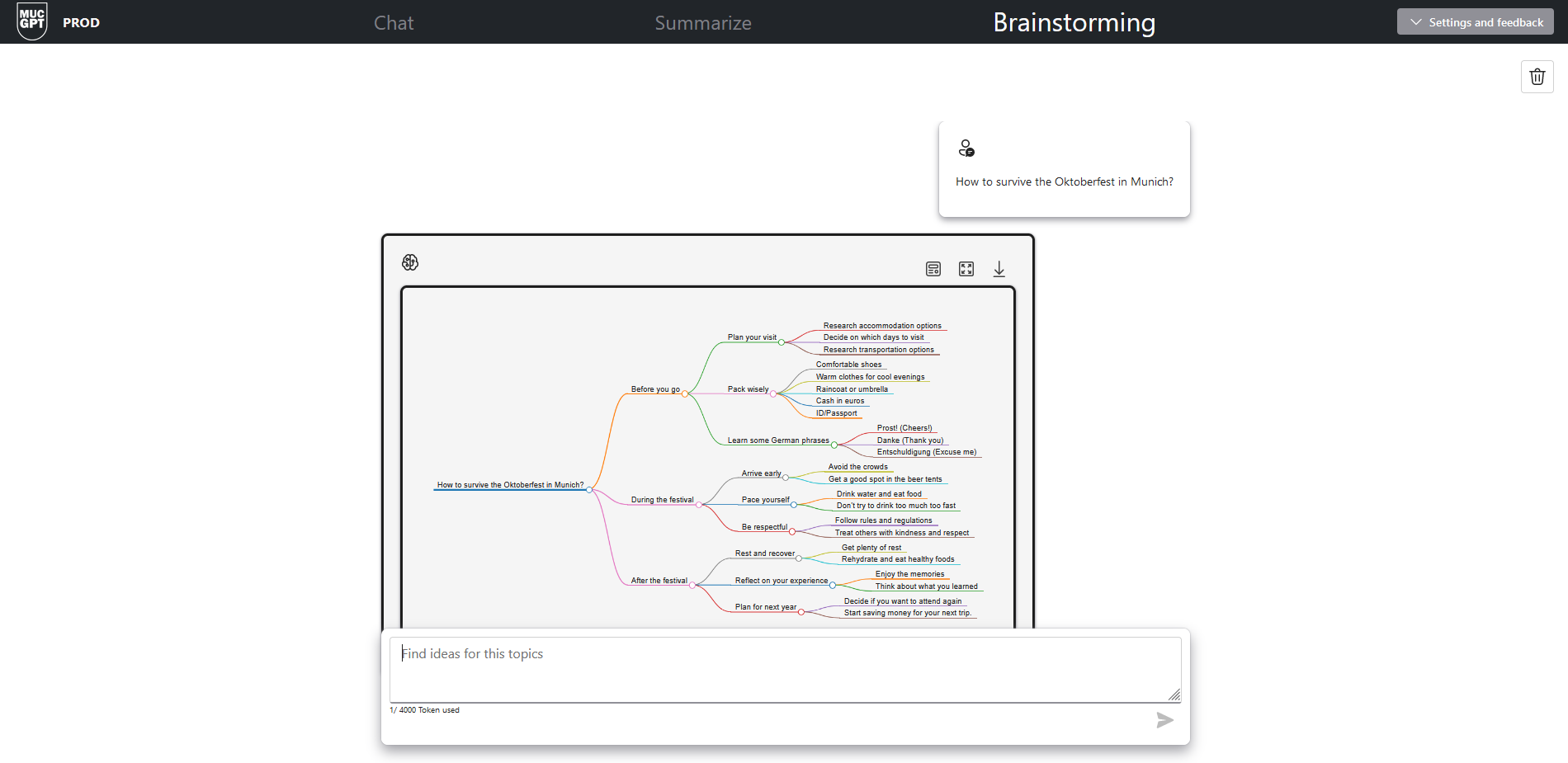 Die Zielgruppe von MUCGPT sind hauptsächlich die Mitarbeiter der Stadt München. Es ist allerdings in Zukunft geplant, das Angebot auch auf die Bildungseinrichtungen der Stadt München zu erweitern. Genutzt wird die künstliche Intelligenz, um Mitarbeitern die Arbeit zu erleichtern. Mit Chat, Textzusammenfassung und Brainstorming-Tools können Benutzer schnell und einfach Inhalte generieren, ihre Ideen organisieren und ihre Produktivität steigern.