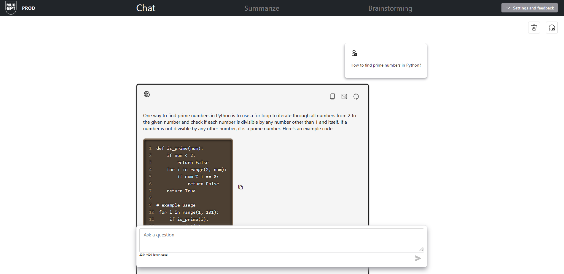Wir wollten wissen, wie MUCGPT genau funktioniert und haben daher gefragt, was diese KI so auf dem Kasten hat. Grundsätzlich ist es so, dass man weder personalisierte noch kontextbezogene Antworten erhält, weil diese nicht Account bezogen gespeichert werden, um den Datenschutz gewährleisten zu können. Die KI erinnert sich nur an die Themen, solange der Verlauf oder Cache des Browsers nicht geleert wird. Als Sprachmodell greift man auf das Unternehmen OpenAI, also die Gründer von ChatGPT, zurück. Auch das französische Modell »Mistral« hat man bereits getestet. Das konnte bisher aber noch nicht überzeugen. Die Speicherung der Daten wird innerhalb der EU verwaltet. Hier setzt man auf Azure Server mit entsprechender Ausstattung. Auch über Self Hosting hat man nachgedacht. Das erfordert für die Realisierung allerdings starke GPUs und viel Rechenleistung.