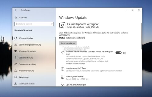 Microsoft hat erneut ein Update für die erweiterten Sicherheitsupdates (ESU) bereitgestellt. Diesmal ist es die KB 5072653, die automatisch über Windows Update erscheint, wenn die KB5066791 als letztes normales Update, oder spätere installiert sind.