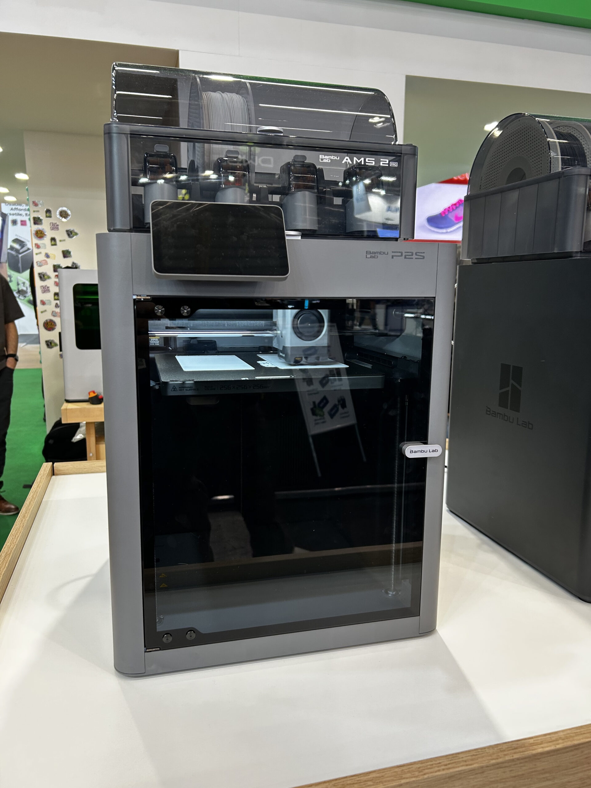 Bambu Lab zog mit Abstand die größte Aufmerksamkeit auf sich. Der Hersteller präsentierte den H2C zum ersten Mal live und löste damit einen ständigen Andrang aus. Das neue Modell baut klar auf dem H2D auf, wirkt aber wesentlich erwachsener. Eine aktive Kammer, ein verbessertes Materialsystem und eine stabilere Gesamtkonstruktion richten das Gerät stärker auf semiprofessionelle Anwendungen aus. Auch der P2S war zu sehen. Er richtet sich an Anwender, die regelmäßig mit anspruchsvollen Filamenten arbeiten.