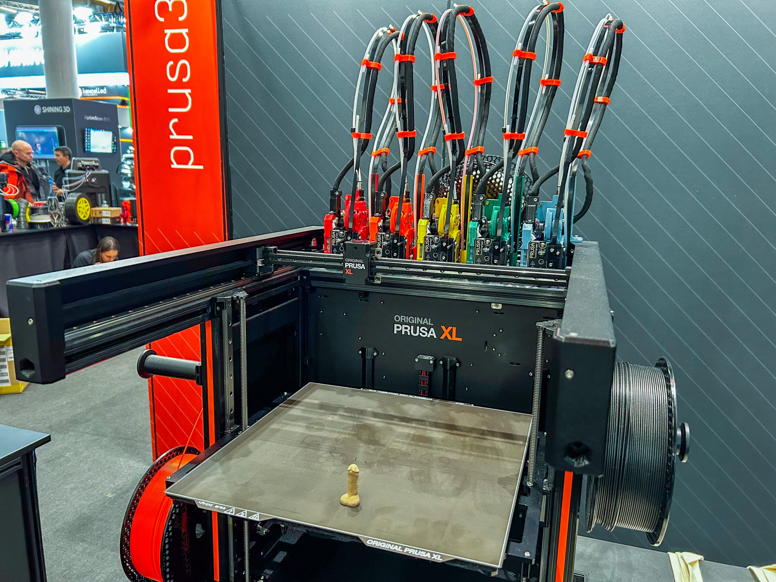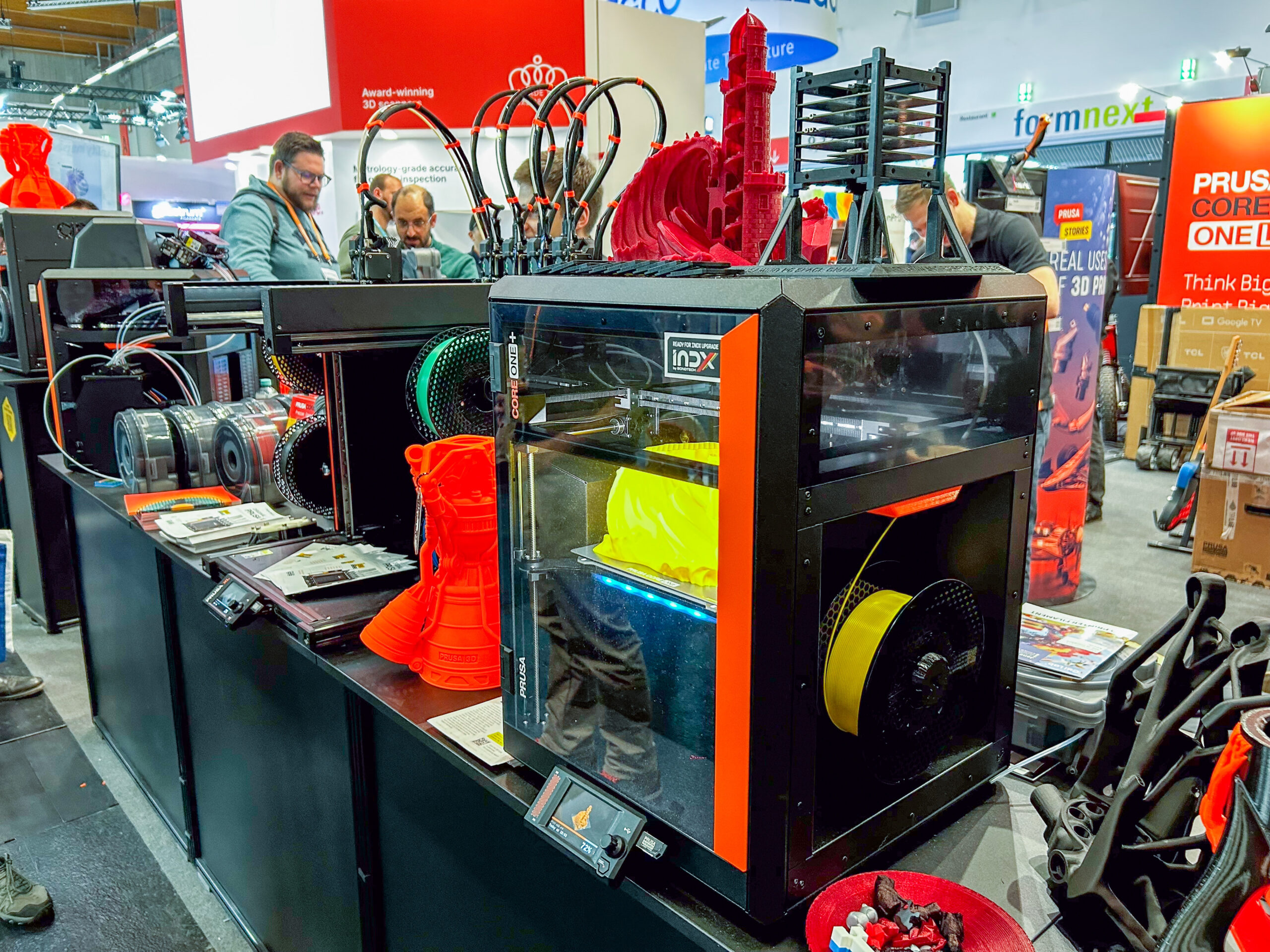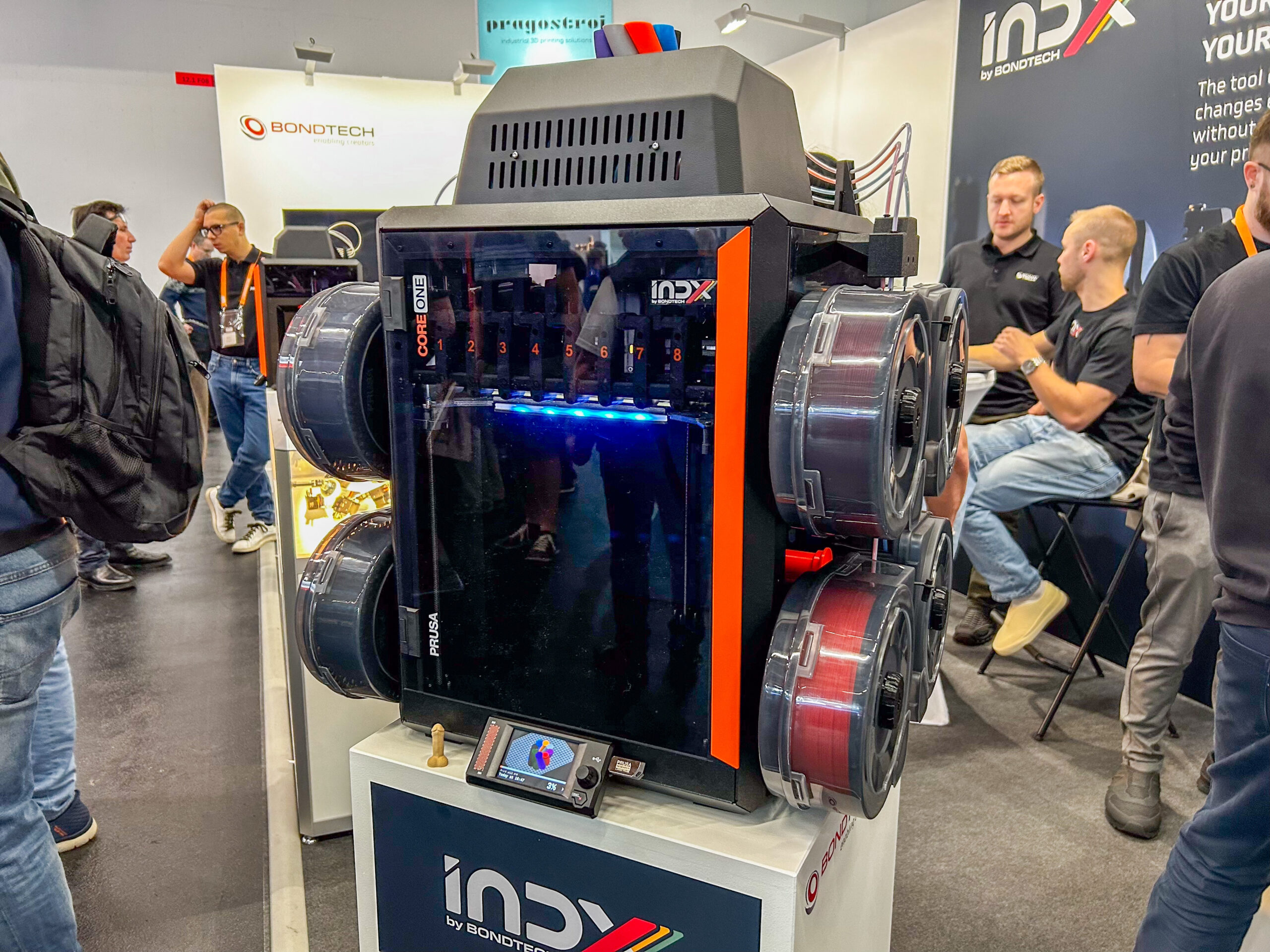 Prusa präsentierte in diesem Jahr das neue INDX-System, das in Zusammenarbeit mit Bondtech entstand. Das Gerät soll eine präzise Materialführung und eine hohe Wiederholgenauigkeit bieten. Viele Besucher zeigten sich beeindruckt von der klaren Ausrichtung auf professionelle Anwendungen. Zusätzlich zeigte Prusa sein komplettes Line-up – darunter der Prusa XL mit fünf Werkzeugköpfen und ein neuer Silikondruckkopf, der die Materialvielfalt erweitert.