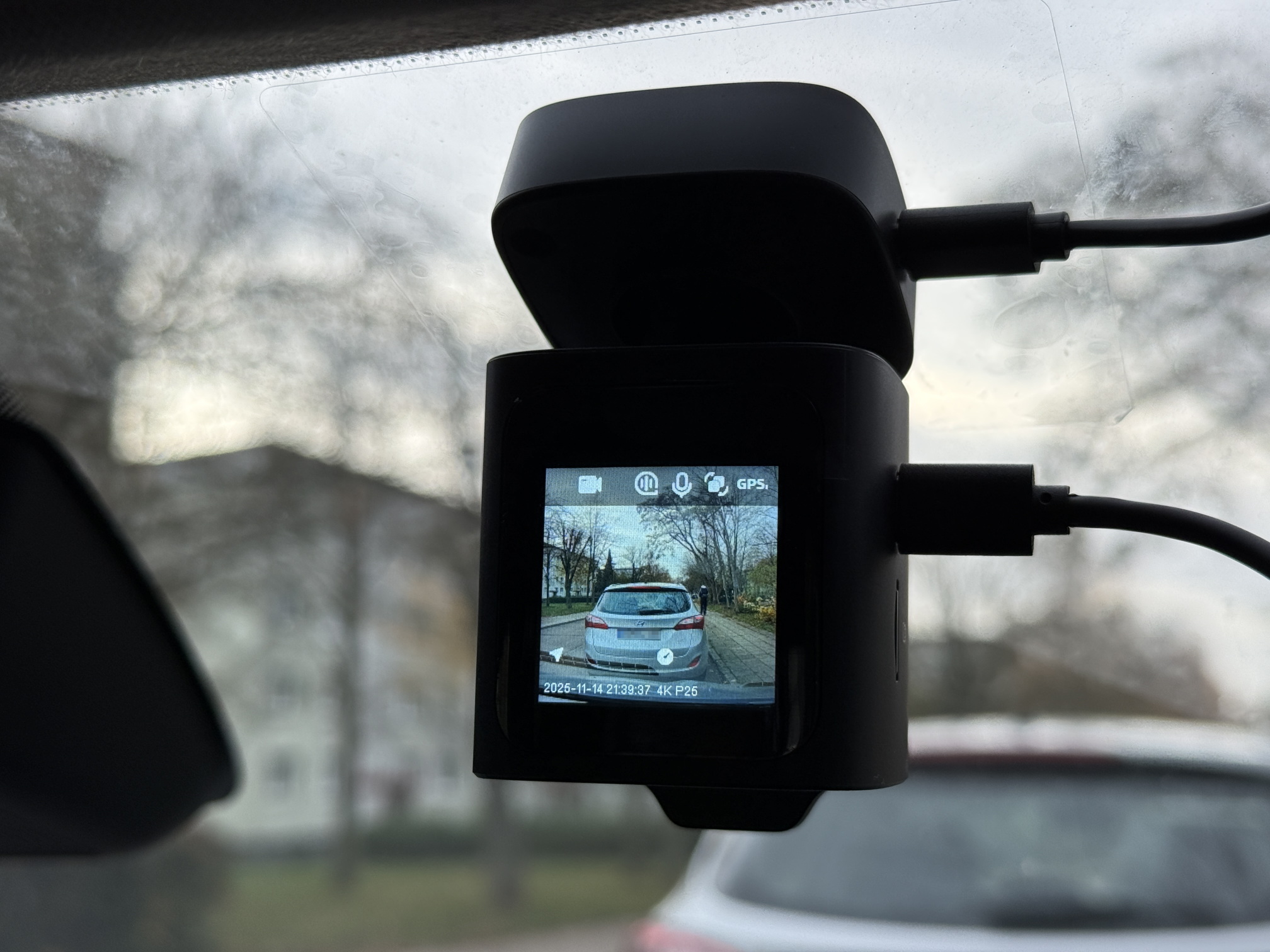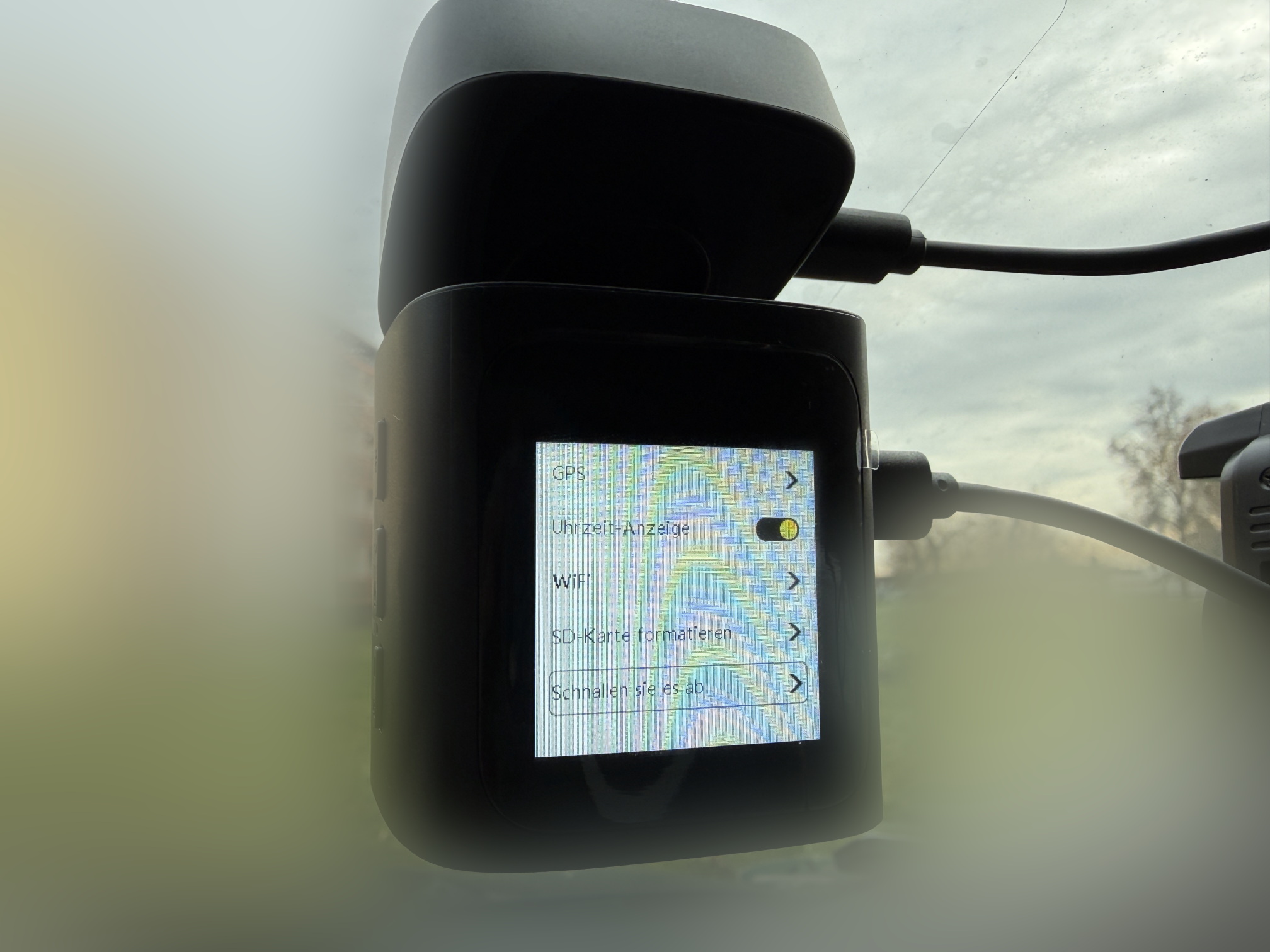 Während sich das Menü der Dashcam ganz okay über die Knöpfe bedienen lässt, ist die deutsche Übersetzung stellenweise schlecht ausgefallen. Die eigenständige Sicherung von Dashcam-Aufnahmen rein über die separat aktivierbaren Sprachbefehle zu realisieren ist keine sonderlich tolle Idee. Der Hersteller würde uns zwar benachrichtigen, sollte man da softwareseitig etwas realisieren, so ist es jedoch keine tolle Lösung. Insbesondere mit lauten Umgebungsgeräuschen oder wenn die Stimme nicht „mächtig“ genug ist, „Lock the video“ auszusprechen. Dass die Sprachsteuerung auch noch als „KI-Sprachsteuerung“ beworben wird, macht die Sache umso miserabler. Für Einsender dubioser Verkehrsbeobachtungen an Dashcam-Kanäle ist das somit keine wirklich geeignete Wahl.