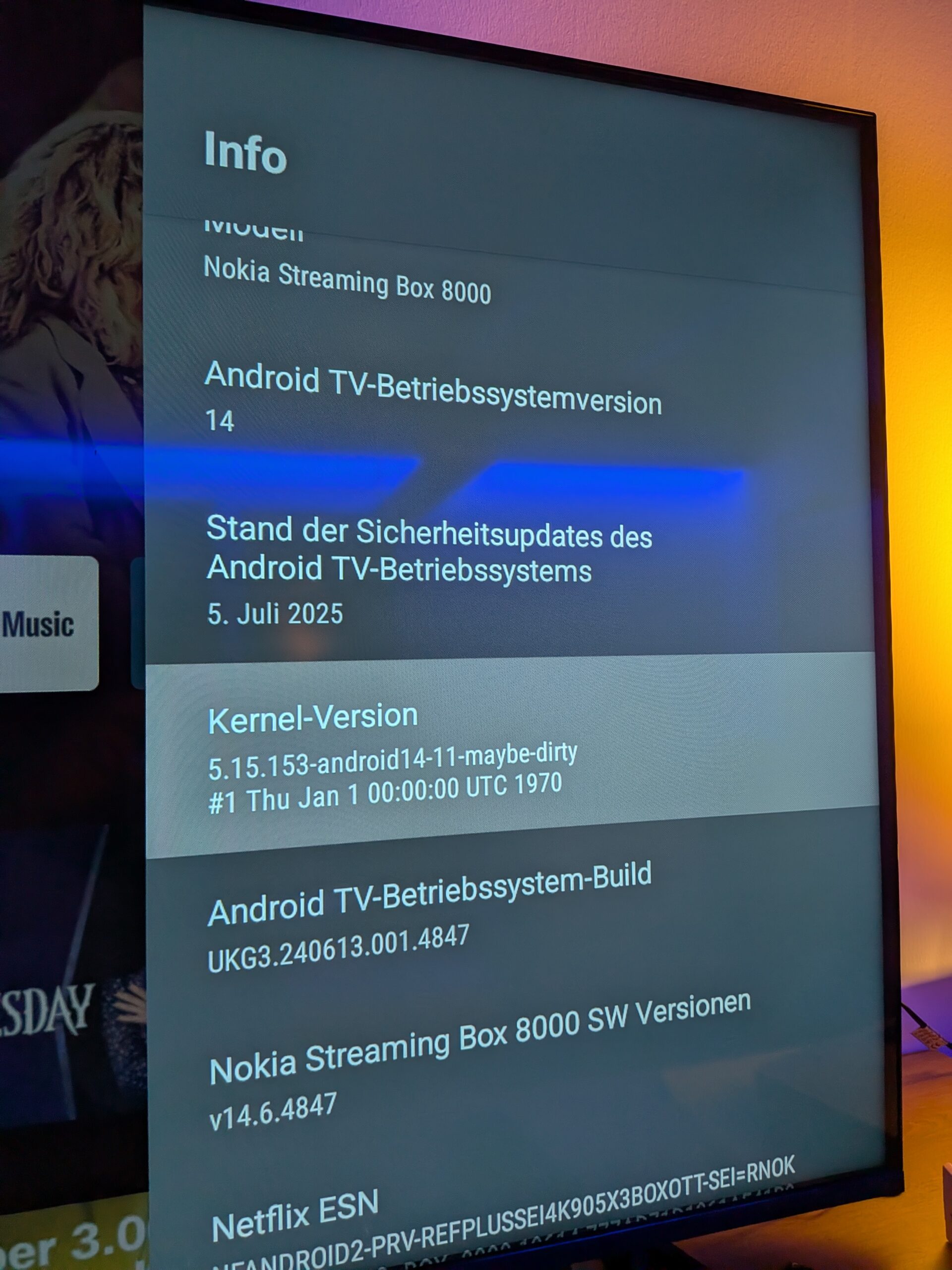 Das neue Update auf Android TV 14 ist 1,15 GB groß, hat die Version v14.6.4847 mit dem Android Sicherheitsupdate Juli 2025.