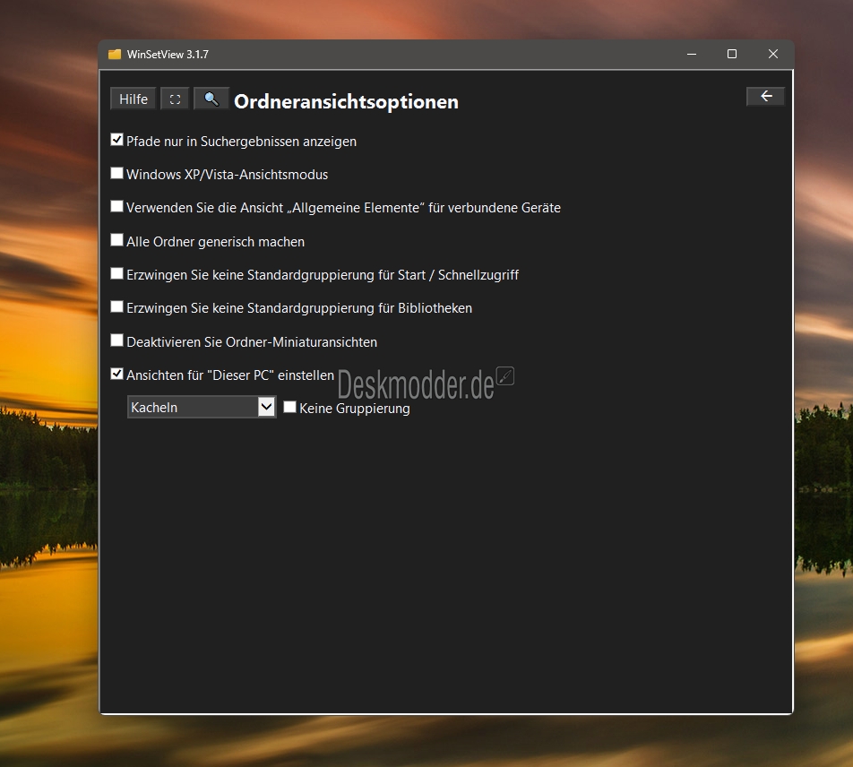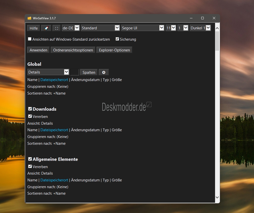 Und hier setzt WinSetView an. Kann die Einstellungen, die ihr möchtet, global übernehmen, oder eben ganz wie ihr wollt. In der neuen Version 3.1.7 wurden wieder einige Verbesserungen vorgenommen.