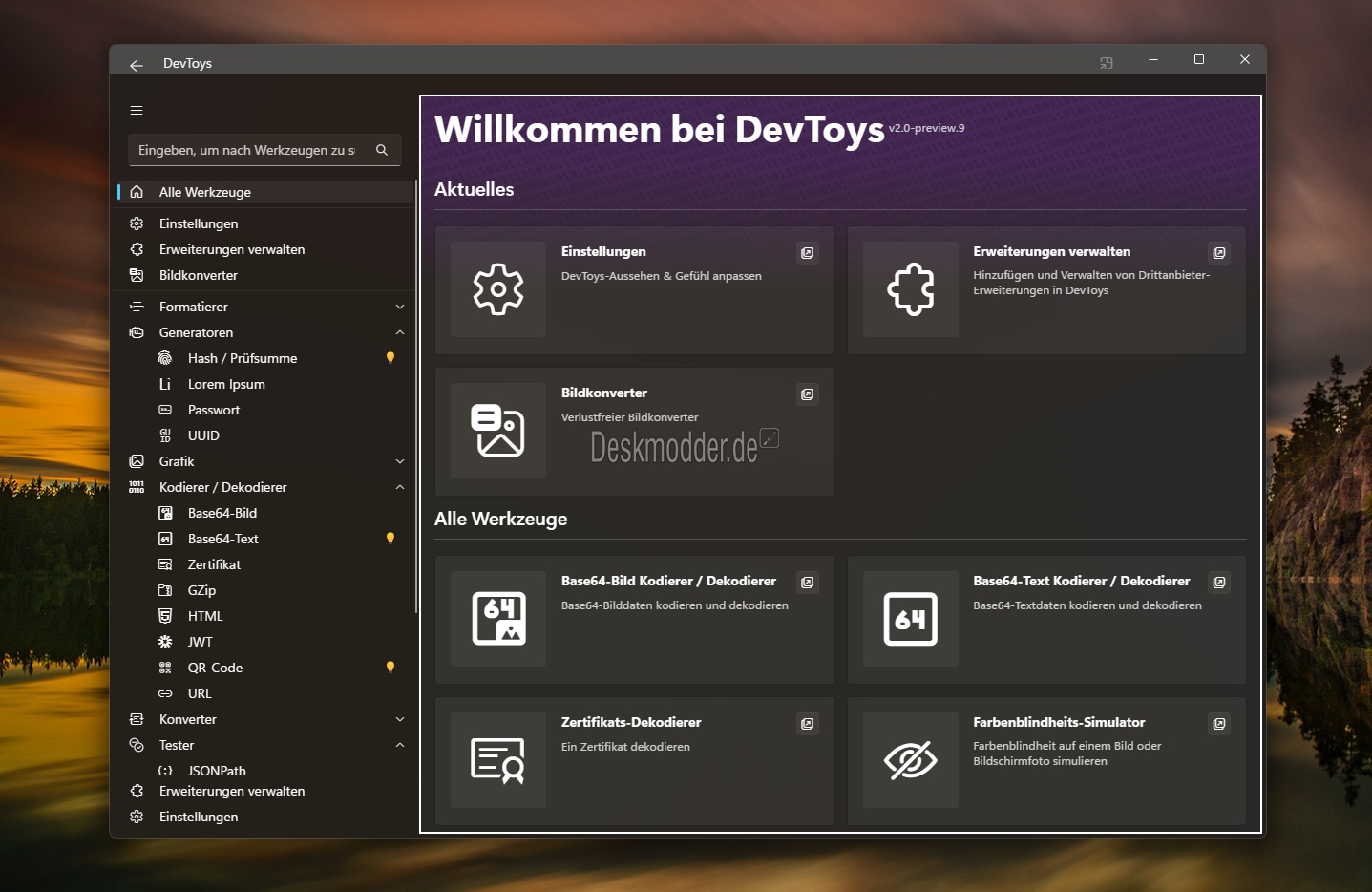 Falls ihr die DevToys bis jetzt nicht kennen solltet. Es wird als Schweizer Messer bezeichnet und bietet viele Funktionen: vom Konverter, De- und Encoder, Formatierer und mehr. Und von den Erweiterungen sind wieder ein paar mehr dazugekommen.