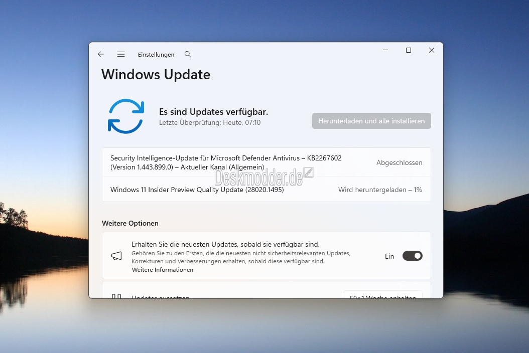 - Es wurde ein Problem behoben, das dazu führen konnte, dass die Seite mit den Windows Update-Einstellungen beim Laden hängen blieb.