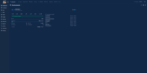 Nach dem Start präsentiert Dockhand ein aufgeräumtes Dashboard, das sofort zeigt, was auf dem System passiert. Aktive Container, CPU- und RAM-Auslastung, laufende Stacks sowie der Zustand der Docker-Umgebung sind auf einen Blick sichtbar. Gerade für Server mit mehreren Containern ist das praktisch, weil man nicht erst durch Menüs navigieren muss, um grundlegende Informationen zu erhalten.