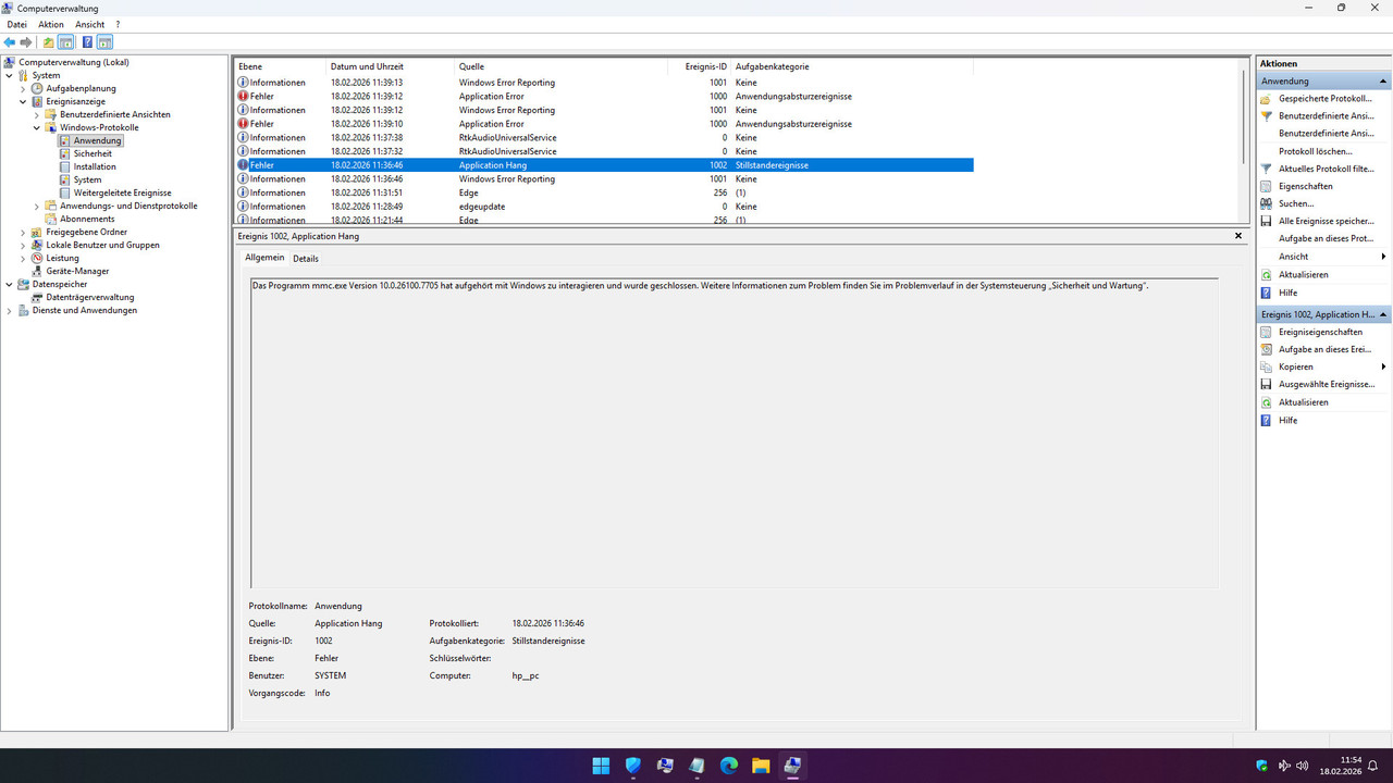 Das Programm mmc.exe Version 10.0.26100.7705 hat aufgehört mit Windows zu interagieren und wurde geschlossen.