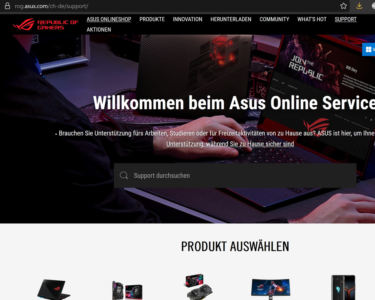 Verwende die Schweizer ASUS Seite mit einem aussereuropäischen VPN.