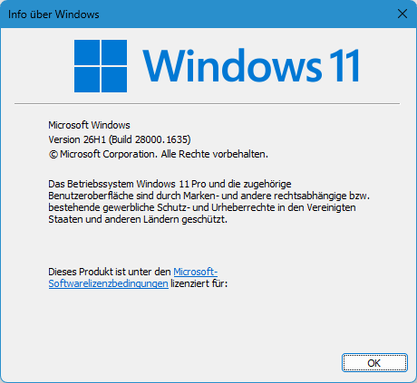(Original 13.02.2026) Still und heimlich hat Microsoft die Windows 11 26H1 in den Retail-Kanal geschoben. Ist auch nicht so dramatisch, denn die 26H1 wird es offiziell nur vorinstalliert auf speziellen Geräten geben. Mehr dazu könnt ihr euch hier durchlesen.