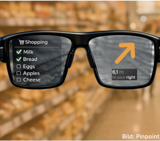Auf dem MWC demonstriert Pinpoint ein Szenario, das im Messeumfeld durchaus Sinn ergibt: Zwei Nutzer navigieren direkt zueinander – unabhängig vom jeweiligen Gerät. In großen Menschenmengen kann das schneller funktionieren als jede klassische Standortfreigabe per Karte. Darüber hinaus zeigt das Unternehmen eine freihändige Navigation mit Smart Glasses.