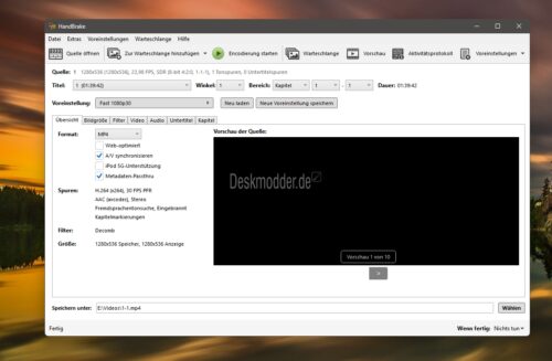 Falls .NET 10 noch nicht installiert sein sollte, wird dies beim Start von HandBrake fast automatisch nachgeholt. Danach kann es wieder weitergehen, wie gewohnt. Weiterhin wurde unter Windows die Unterstützung für Intel HyperEncode entfernt, da sie veraltet ist.