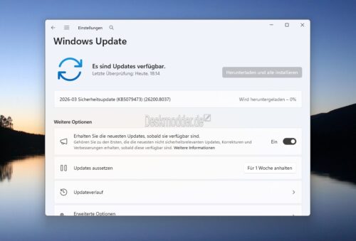 Der zweite Dienstag ist heute und damit ist wieder Patchday für Windows angesagt. Microsoft hat für die Windows 11 24H2 und auch Windows 11 25H2 die KB 5079473 bereitgestellt. Die Versionsnummer ändert sich damit auf die 26200.8037 (25H2), bzw. 26100.8037 (24H2).