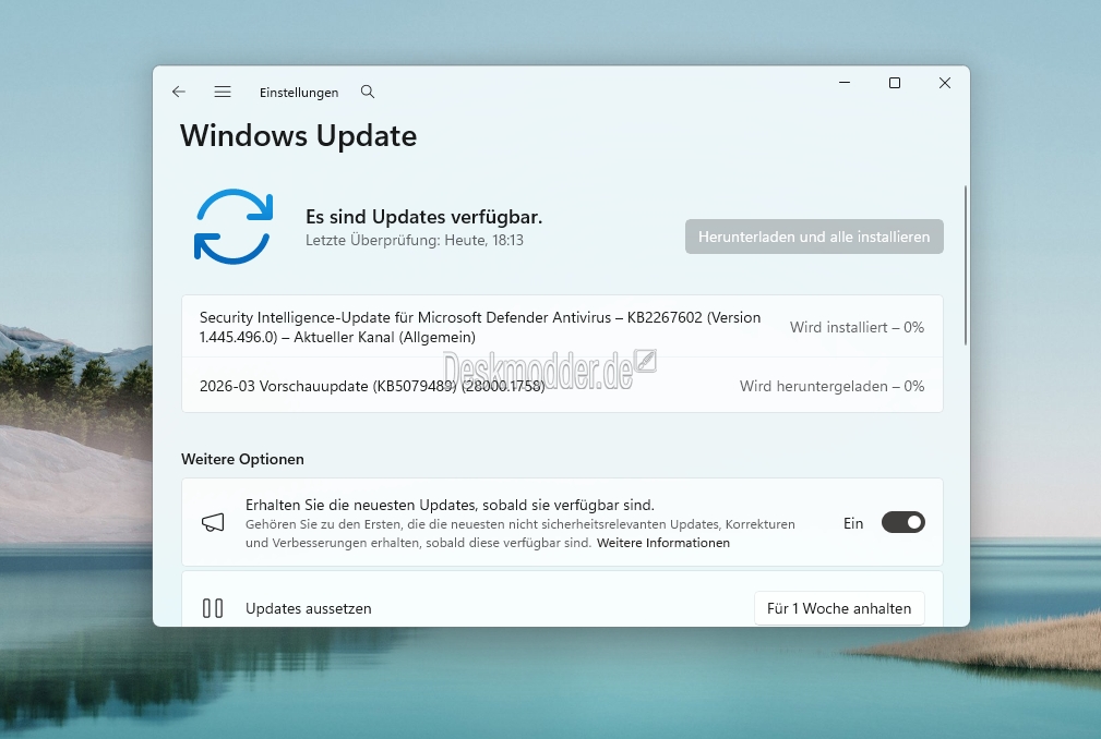 Die Sicherheitsupdates sind vorbei und da starten auch schon die neuen optionalen Updates für den Monat März. Für die Windows 11 26H1 ist es die KB 5079489 (2026-03 Vorschauupdate (KB5079489) (28000.1758)). Dadurch wird die Buildnummer auf die 28000.1758 erhöht.