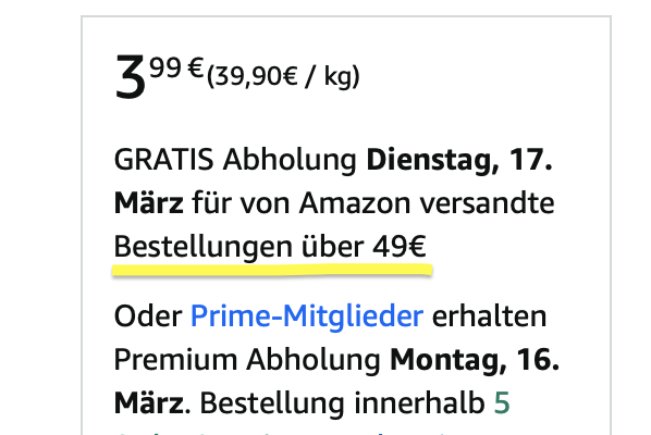 Wir erinnern uns: Noch bis 2024 konnte man sich an Abholstationen (Packstationen) sogar alles kostenlos liefern lassen – ganz ohne Mindestbestellwert. Im letzten Jahr experimentierte man dann bei einigen Kunden mit einem Mindestbestellwert von 59 Euro herum. Jetzt sind es eben 49 Euro geworden.